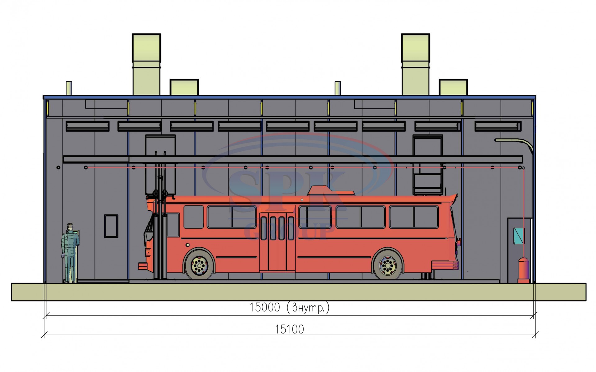 Проходная покрасочно-сушильная камера для троллейбусов SPK-15.6.5
