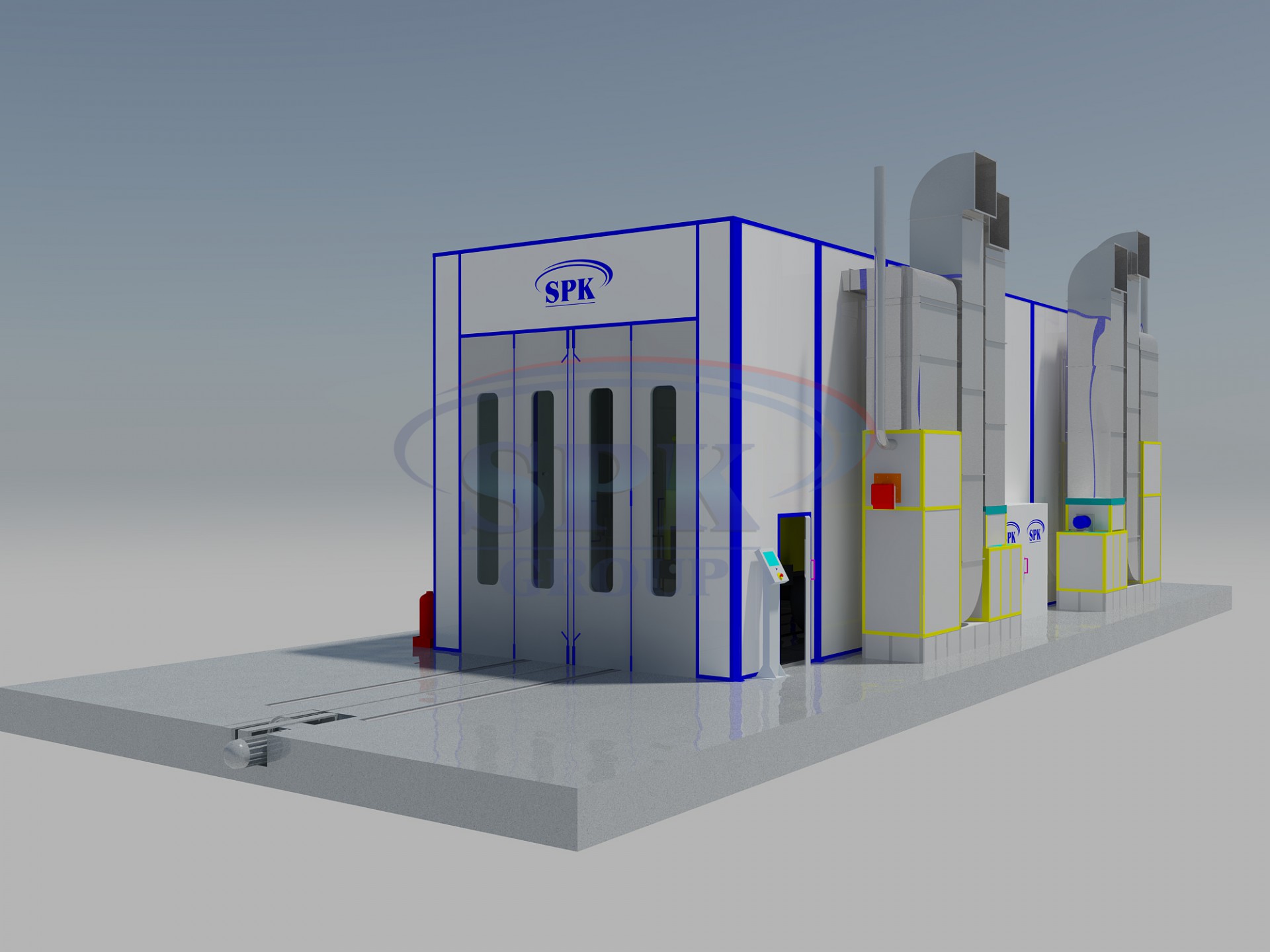 Тупиковая покрасочно-сушильная камера для грузового автотранспорта SPK-15.5.5